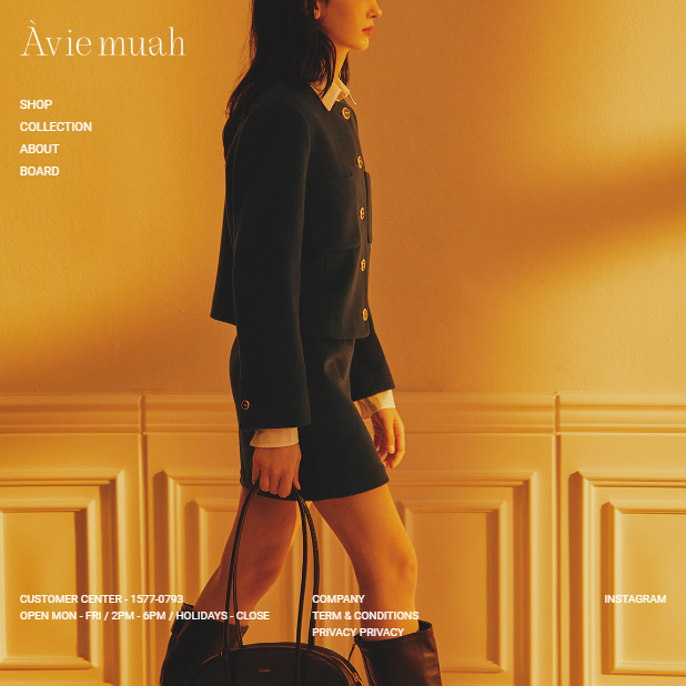 강민경의 쇼핑몰 'Àvie muah'는 프랑스어와 영어를 합성한 이름으로, 평생토록 뽀뽀(할 때 나는 소리)의 의미를 담고 있다. 이 쇼핑몰에서는 자연스러움에 가치를 두고 편안하게 입을 수 있지만 고급스러움을 담고 있는 의류를 주력으로 판매하고 있다. 제품들이 가격대가 있는 편이지만 소재나 컬러가 고급스러워서 한번 구매한 사람의 재방문율이 높다.